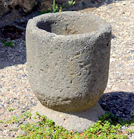 Un oggetto a forma di casco adoperato come secchio per attingere acqua dai pozzi.